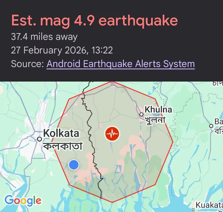 The epicentre of the earthquake was reportedly Nayabazar in Bangladesh, some 100 kilometre from Kolkata.